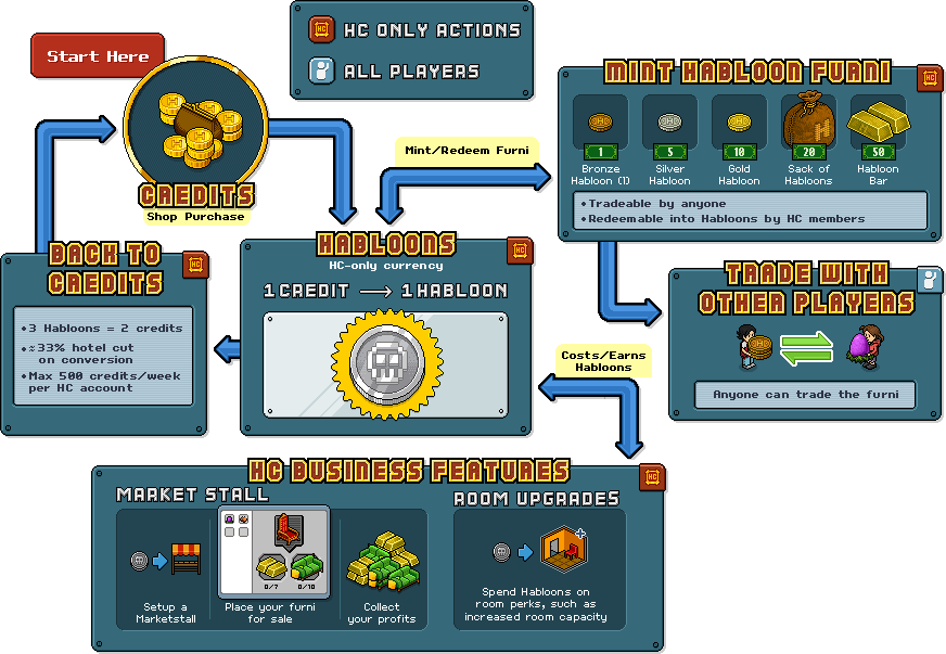 Esto permite que los Habloons circulen como furni manteniendo el control sobre la conversión.