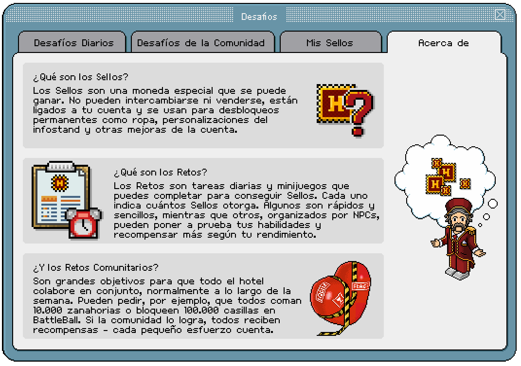 Como ya se había anunciado, uno de los grandes objetivos de Habbo Hotel: Origins hasta finales de 2025 era renovar por completo las tareas diaria, ¡y ya están aquí! Ahora, los desafíos diarios han sido rediseñados y reemplazados por juegos rápidos con NPC para que tu experiencia sea más divertida y dinámica.