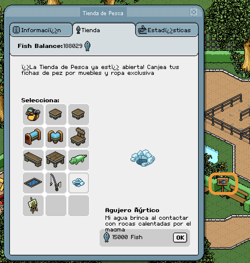 El proceso es sencillo y directo. Acércate a la Tienda de Pesca ubicada en el punto de pesca del Parque del InfoBus y hazte con un Agujero Ártico. Su precio es de 15.000 peces, una cantidad que puede parecer elevada… hasta que recuerdas todo lo que llevas acumulado.